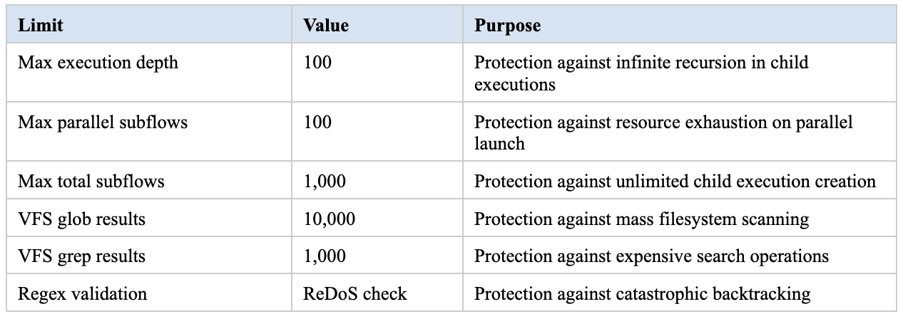 No shell access: nodes cannot spawn processes, invoke /bin/bash, or run arbitrary commands on the host.