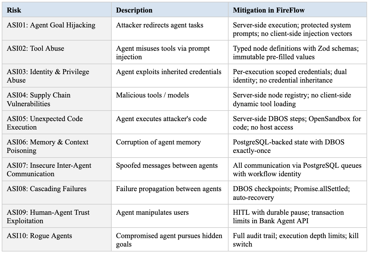 Every agent execution in FireFlow is an isolated DBOS workflow on a dedicated server worker: